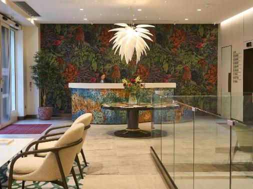 Its impressive facade and position give it a commanding presence, impossible to miss to anyone heading North across London Bridge. It boasts its own private roof terrace as well as a gym located on the basement floor with high-end dining and a bar via the Walesley and Wagtail. The building’s design is exceptional, with a suspended staircase and timeless aesthetic lending an air of collaboration, comfort, and calm.